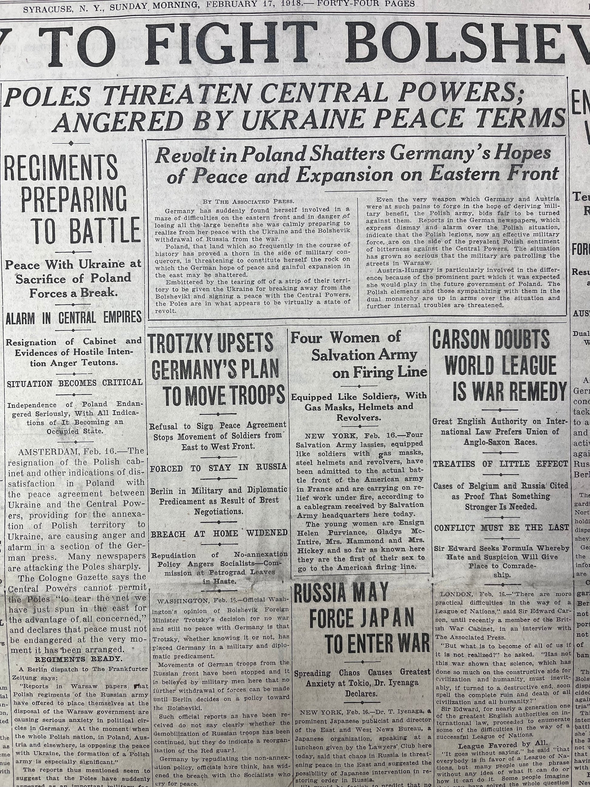 WWI 1918 Bolshevik Revolution Seeks Peace with Central Powers, Treaty of Brest-Litovsk, October Revolution and WWI Memorabilia, Gifts for Fathers and Communists, Vintage Original Newspapers